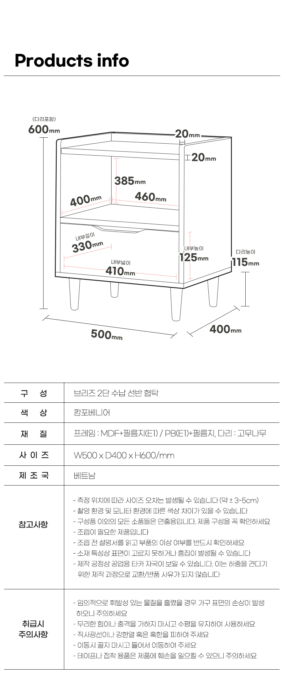 브리즈 선반 수납 2단 협탁