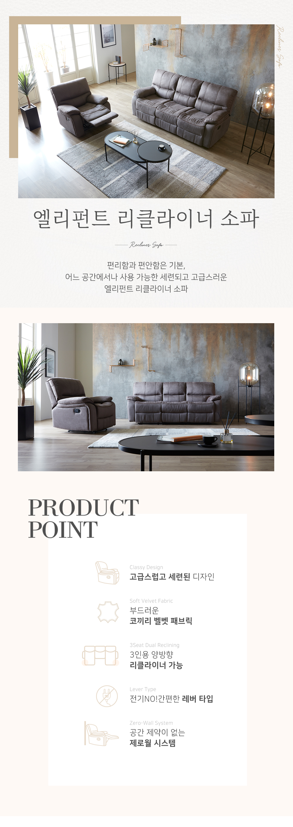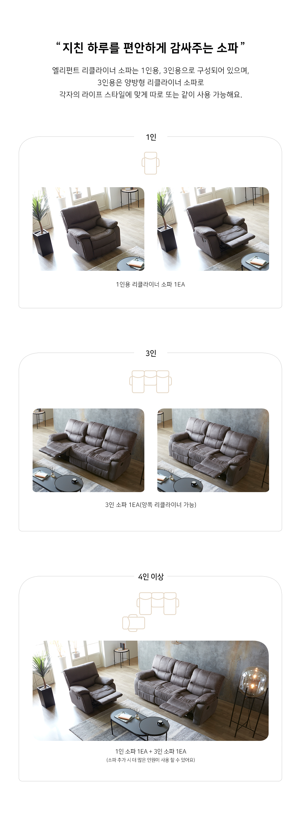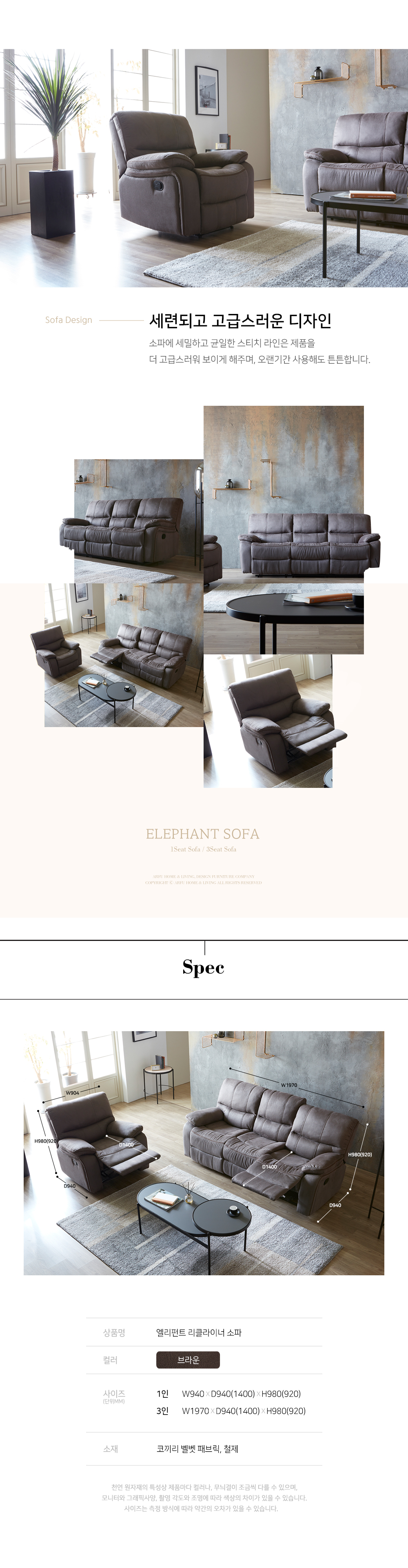 엘리펀트 1인/3인/4인 패브릭 리클라이너 쇼파