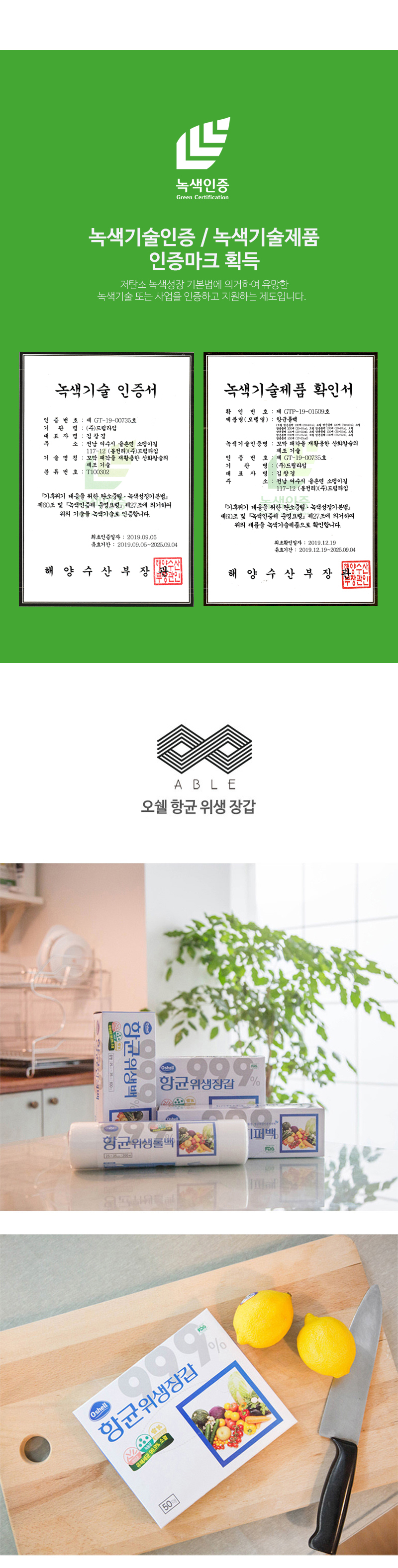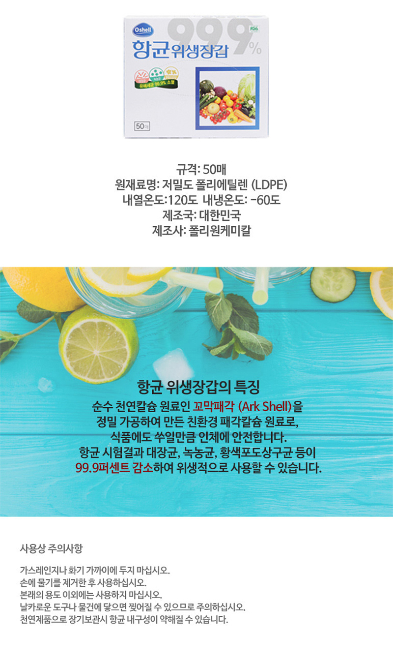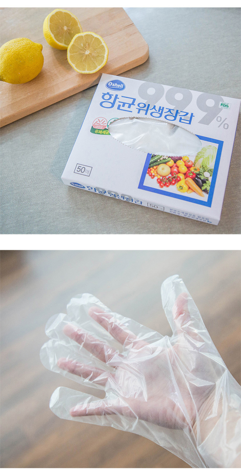 녹색인증 오쉘 항균 위생 장갑 일회용 비닐장갑 50매