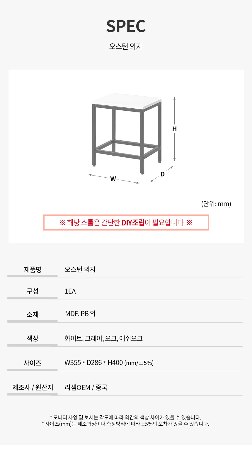 파로마 오스턴 목재 스틸 보조 의자 스툴