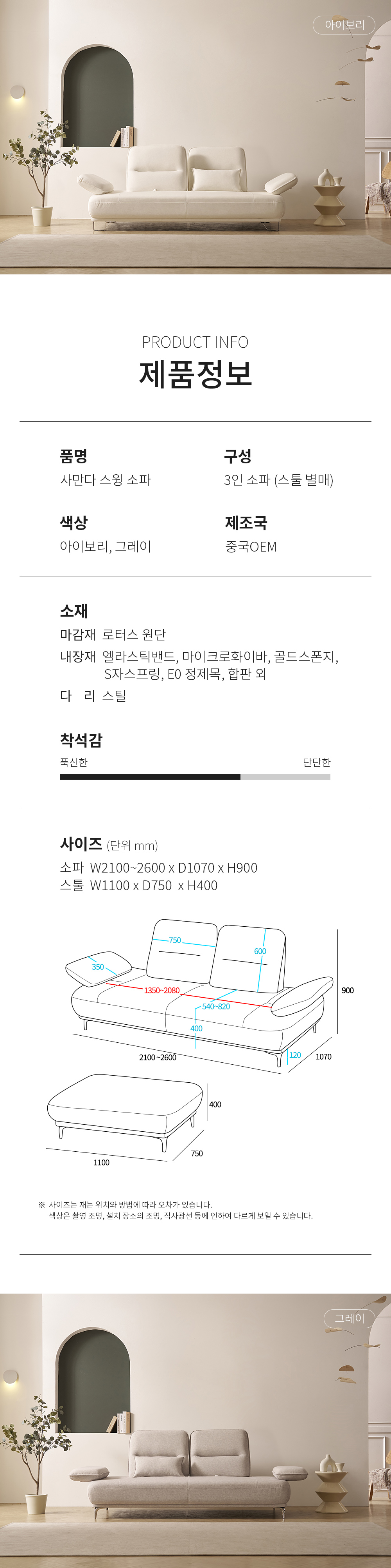 우아미가구 사만다 로터스 3인용 패브릭 스윙 소파