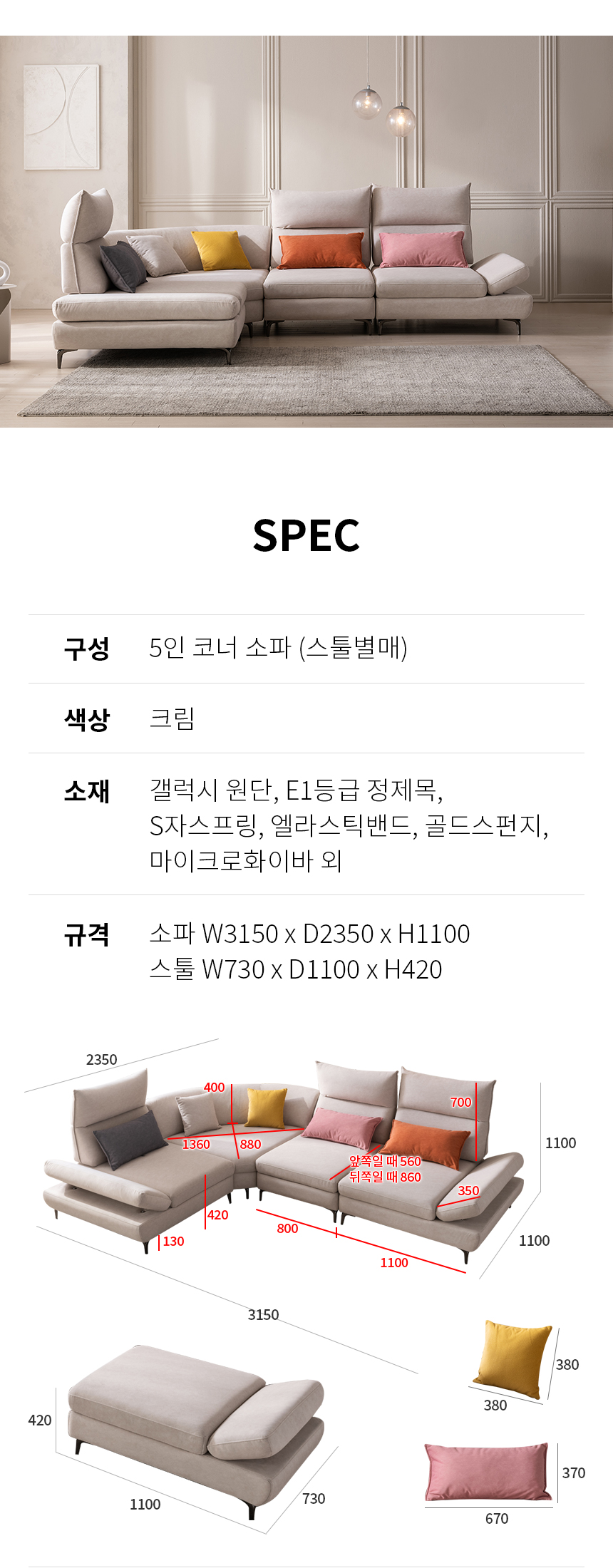 우아미가구 윈 5인 코너형 코브라 스윙 갤럭시 패브릭 소파