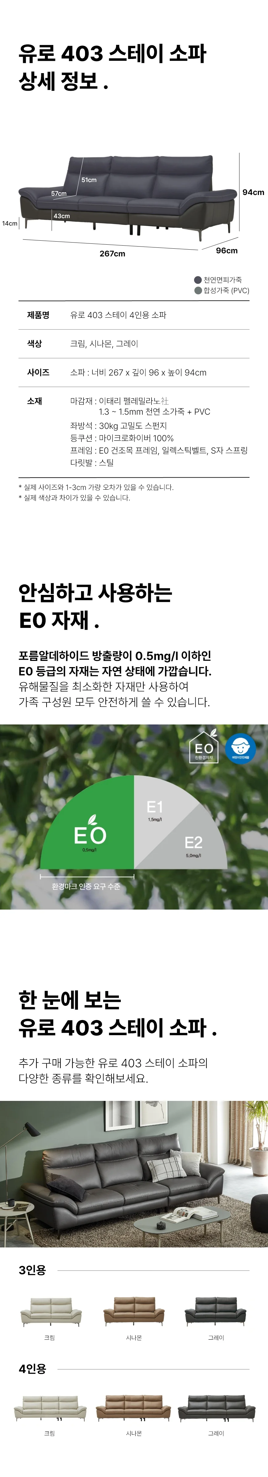 유로 403 스테이 천연가죽 소파 4인(3종/택1)