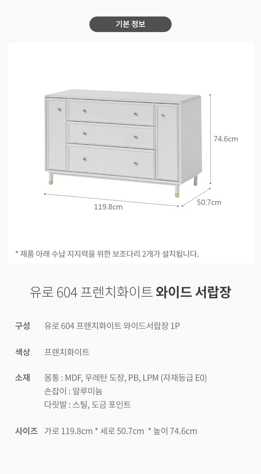 유로 604 3단 와이드서랍장 1200