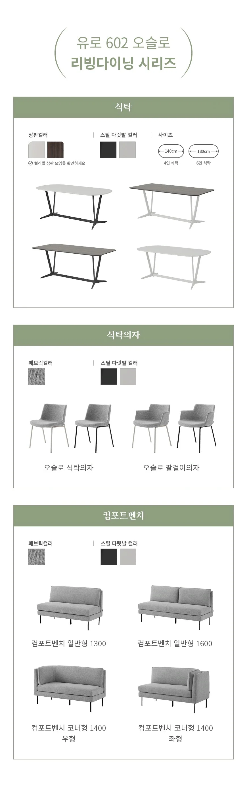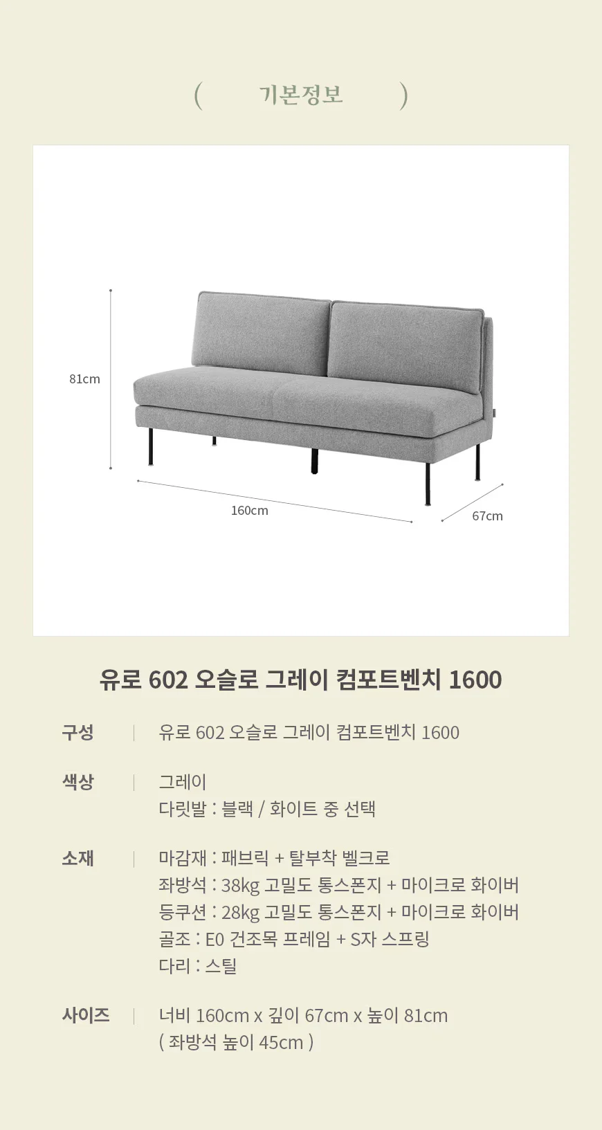 유로602 오슬로 그레이 컴포트벤치 1600