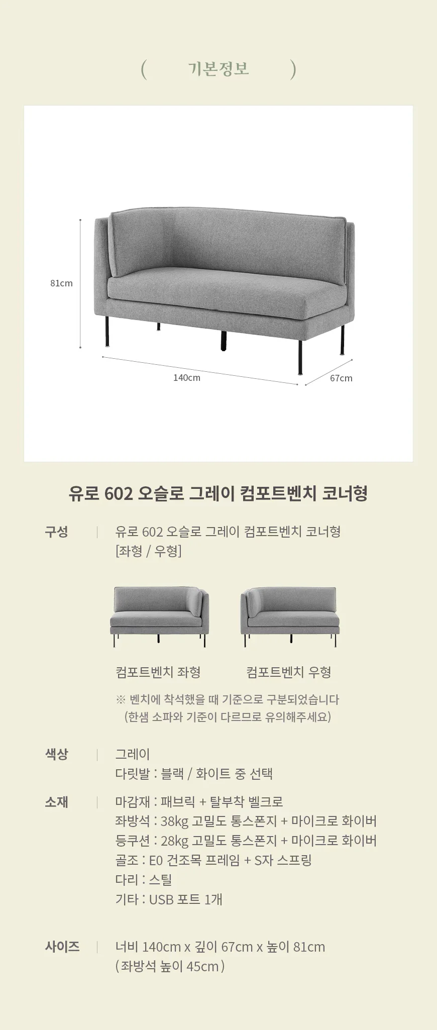 유로602 오슬로 그레이 컴포트벤치 코너형1400