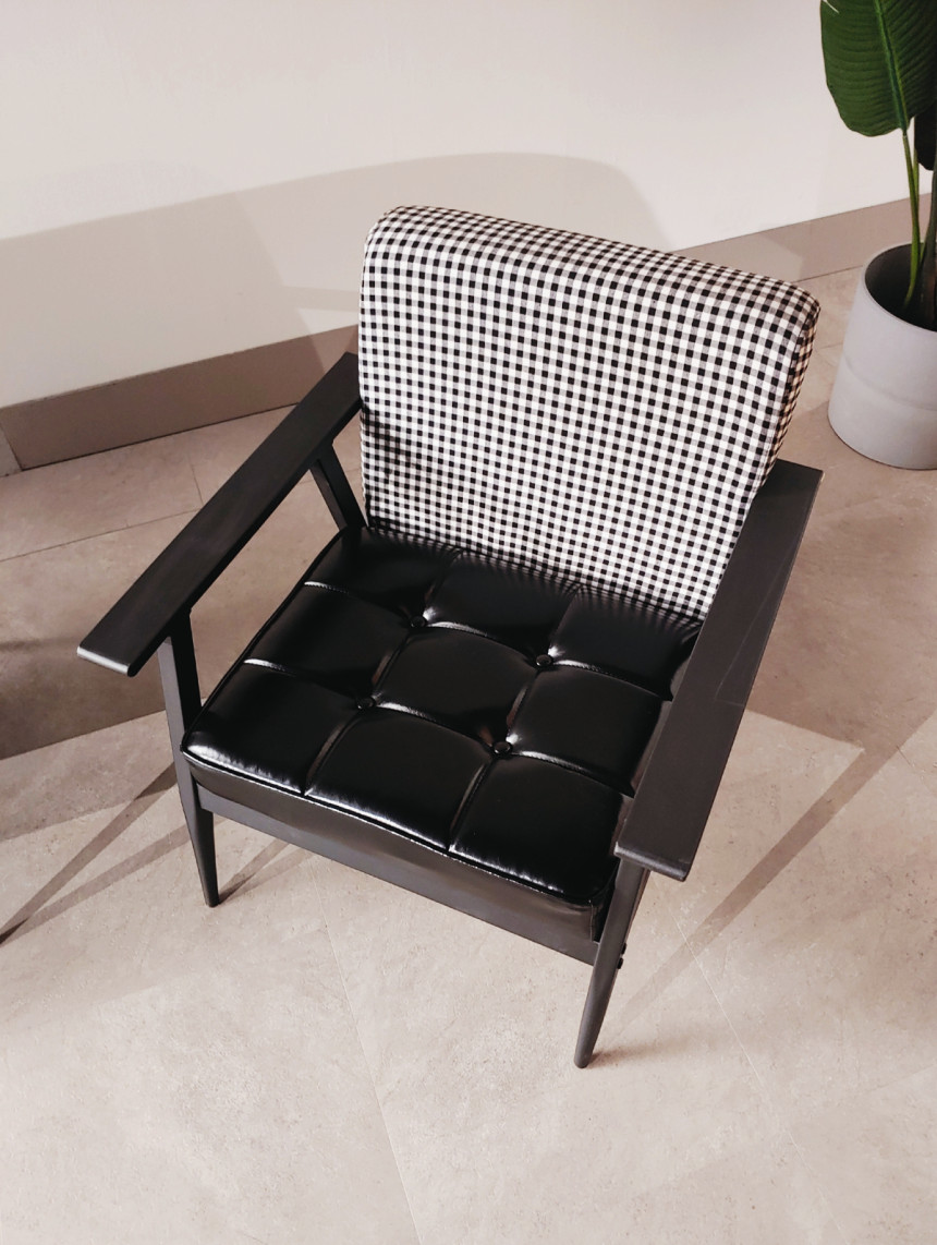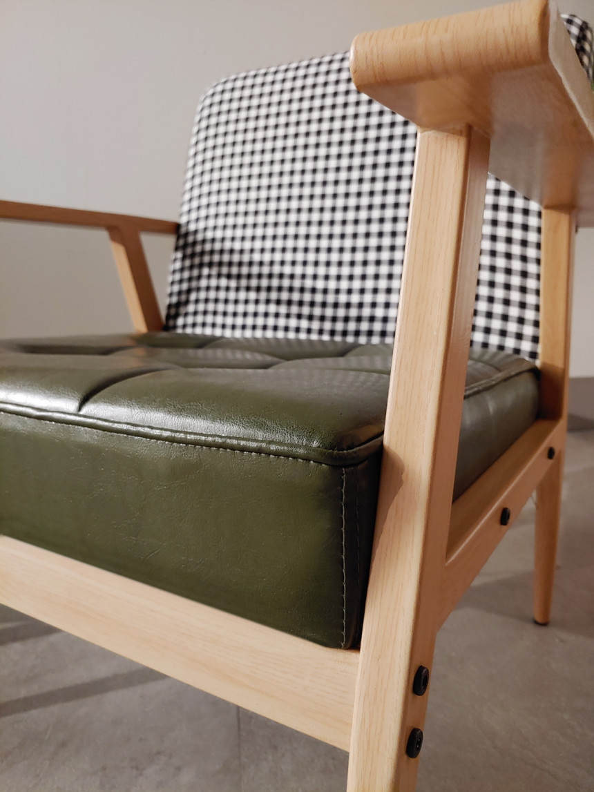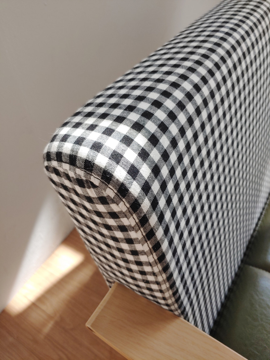 등받이는 체크페브릭제질로