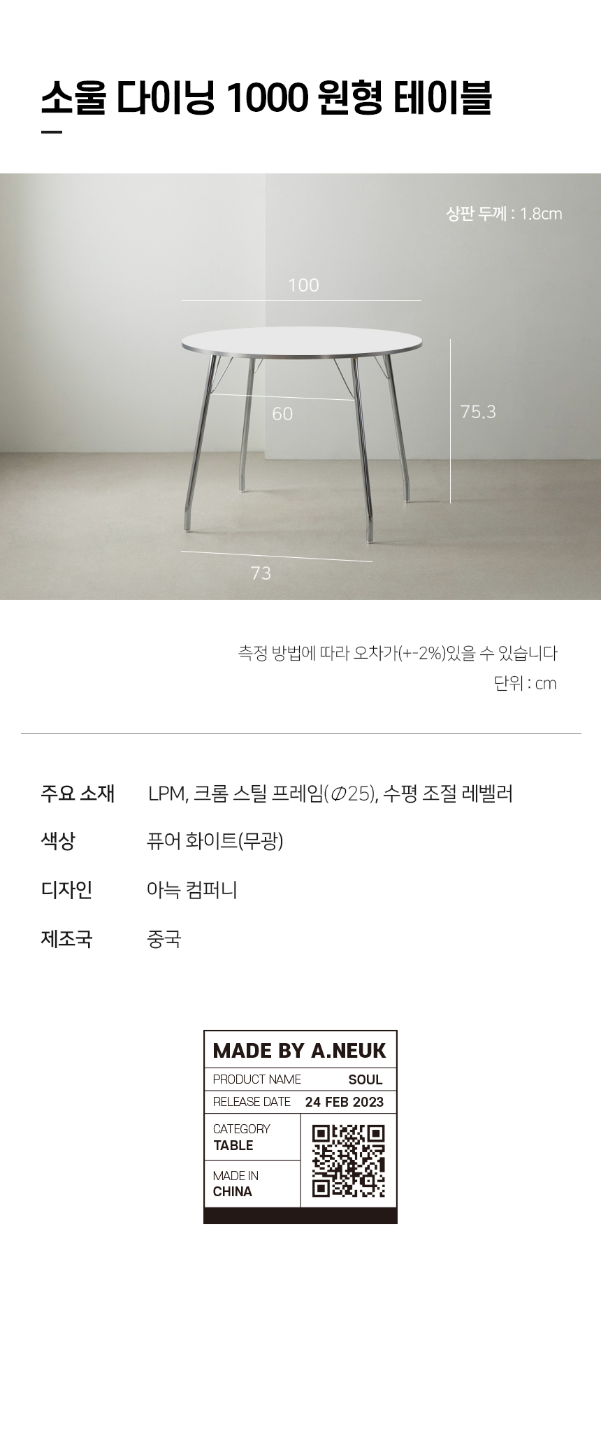 아늑 소울 다이닝 1000 원형 식탁 테이블 / 4인식탁
