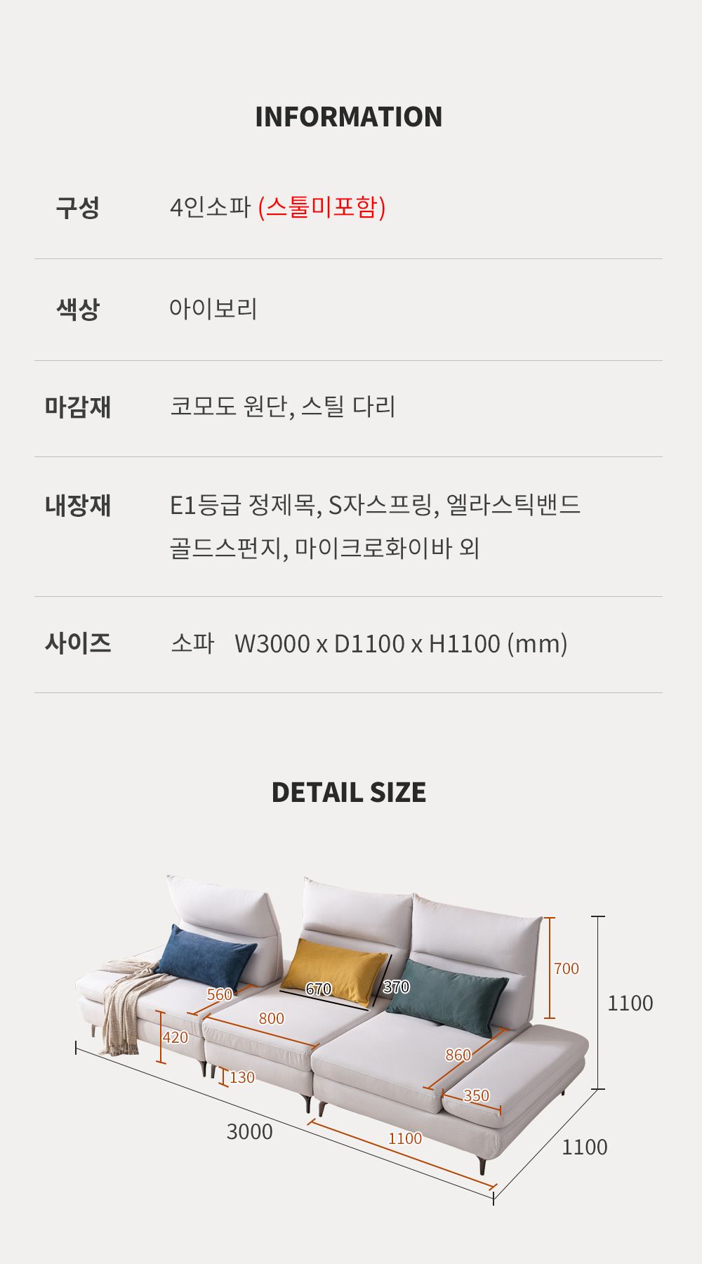 우아미가구 린 4인용 코브라 스윙 코모도 패브릭 소파