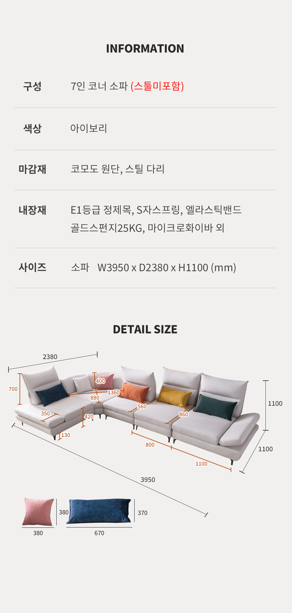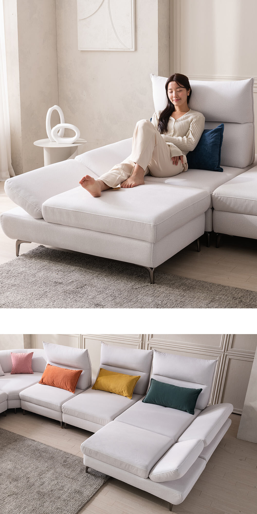 우아미가구 린 7인용 코너형 코브라 스윙 코모도 패브릭 소파