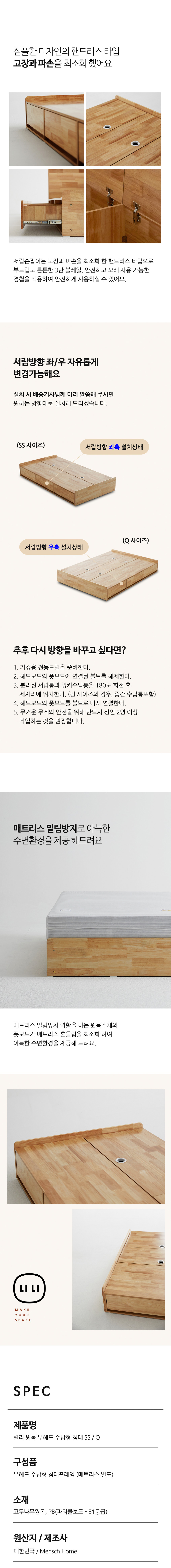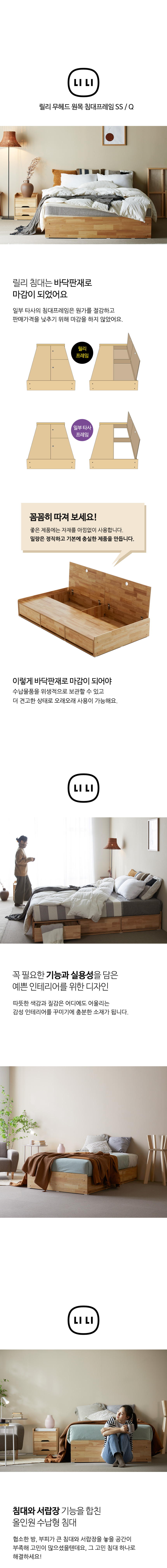 밀랑 릴리 원목 무헤드 평상형 수납 침대 프레임