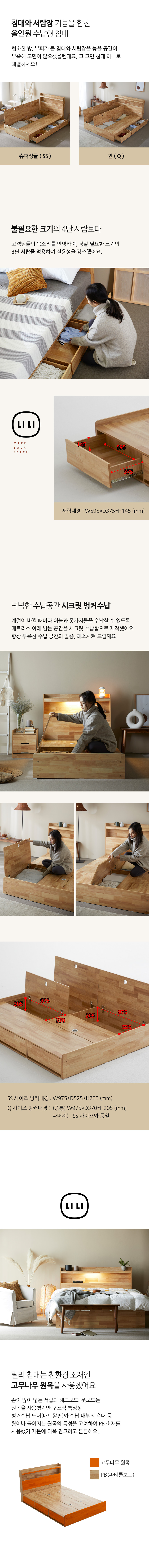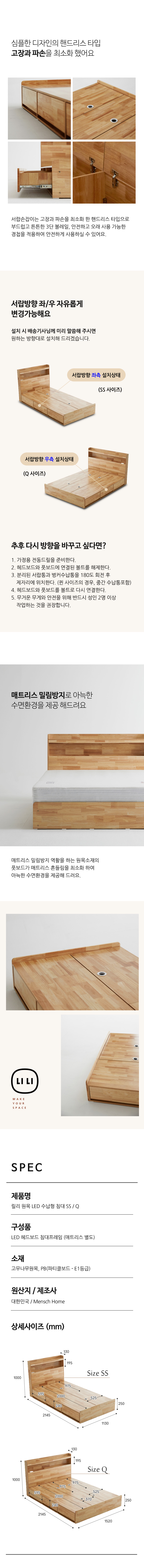 밀랑 릴리 원목 LED 평상형 수납 침대 프레임