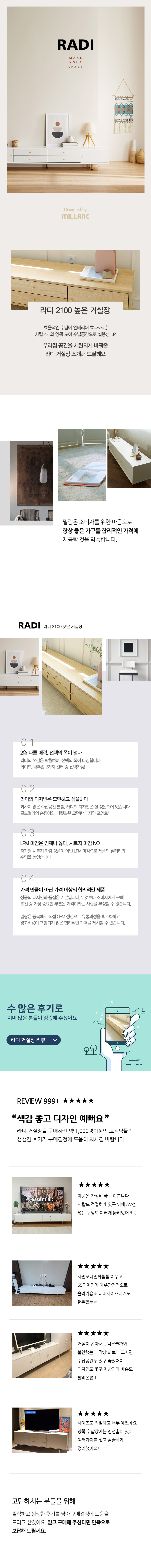 밀랑 라디 2100 티비다이 낮은 거실장 TV서랍장
