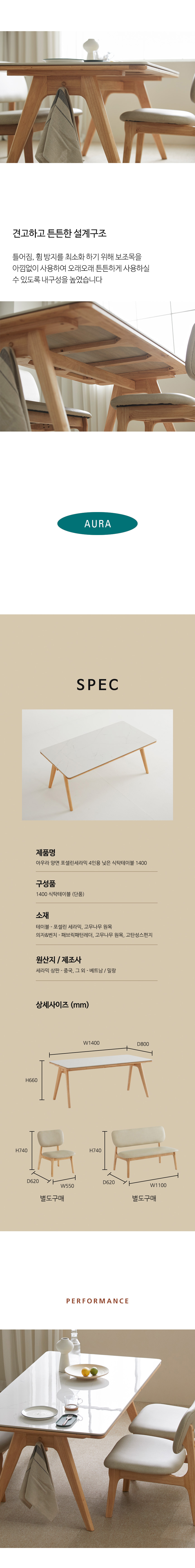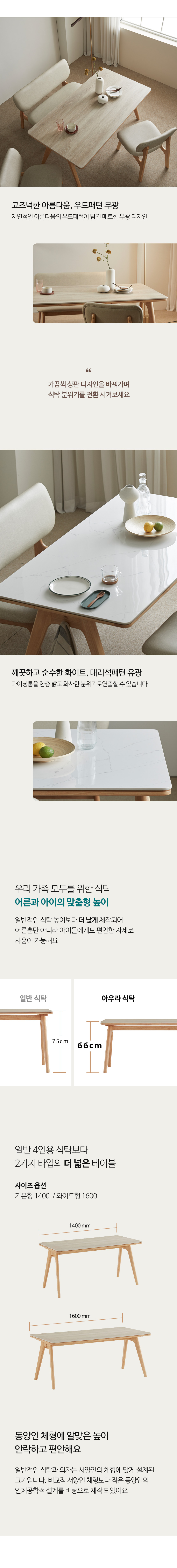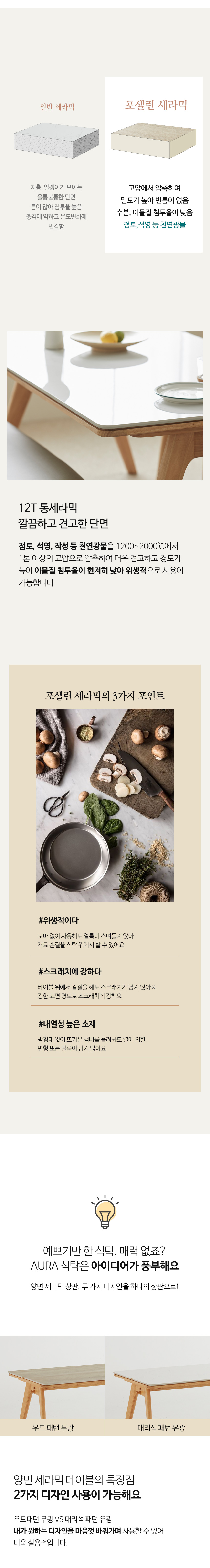 밀랑 아우라 양면 포셀린세라믹 4인용 원목 낮은 식탁 테이블 (1400/1600)