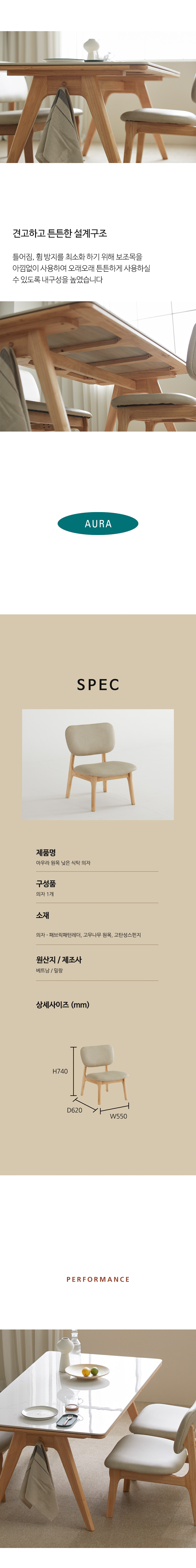 밀랑 아우라 원목 낮은 식탁 의자 소파같은 편안함