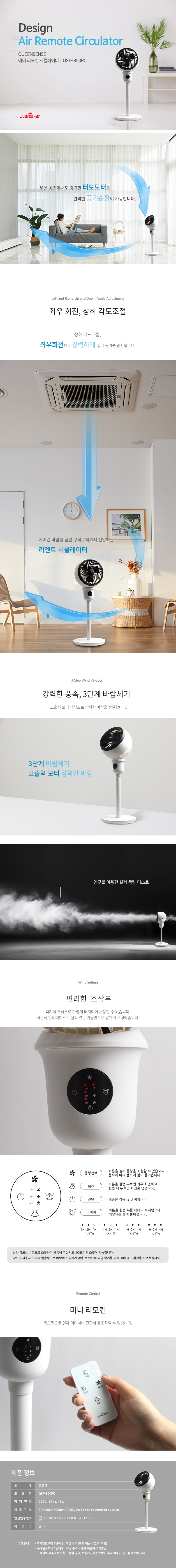 [QUEENSENSE] 퀸센스 리모컨 에어 서큘레이터 QSF-850RC