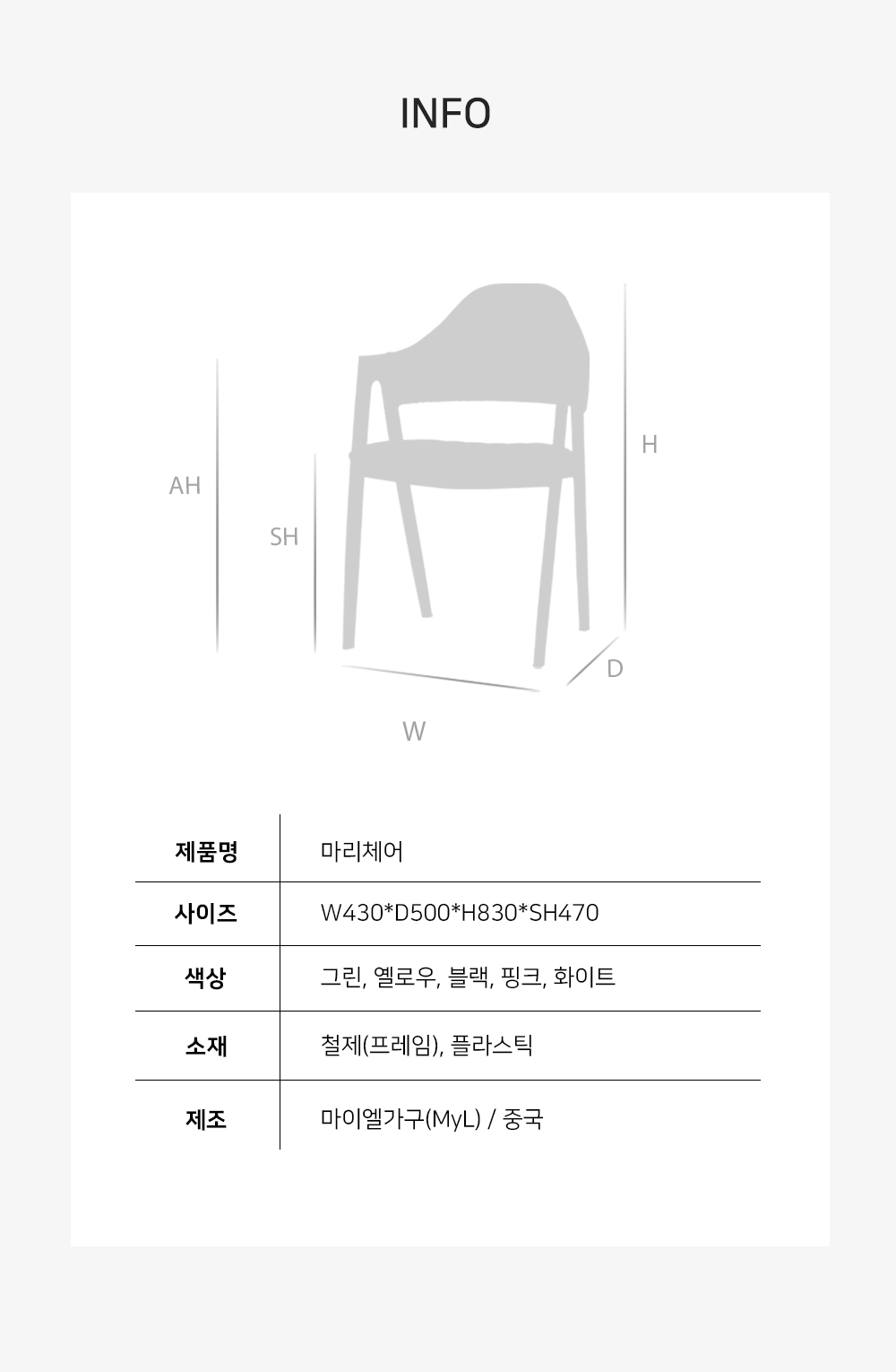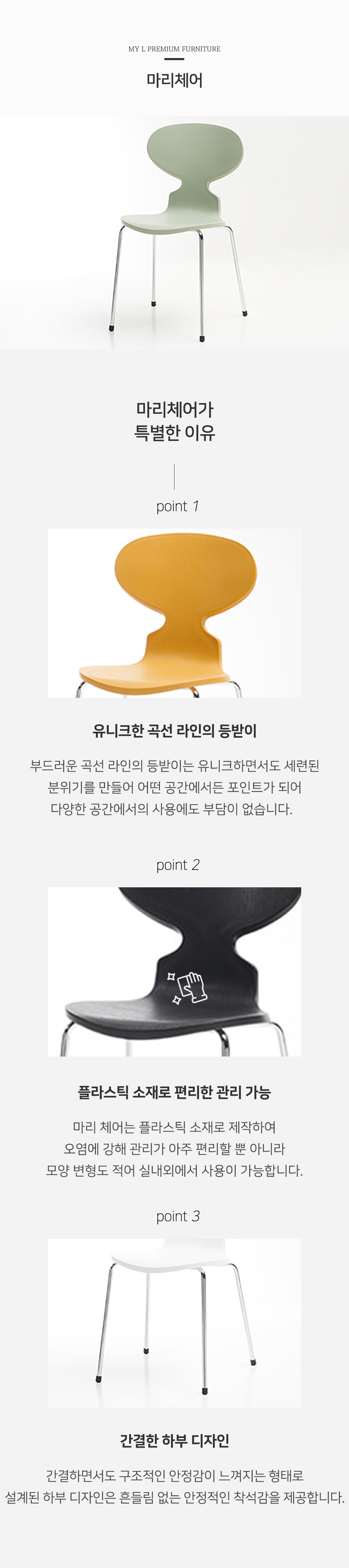 마이엘 마리 옐로우 플라스틱 미드센추리의자 앤트체어
