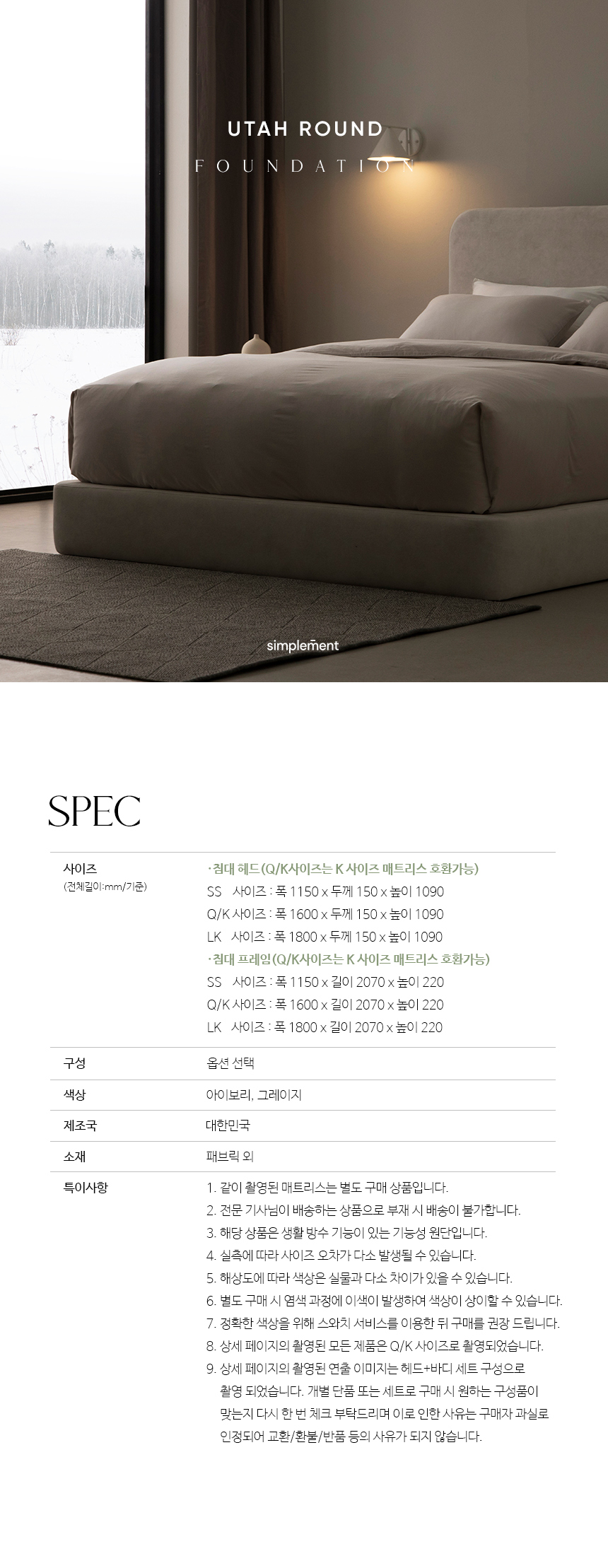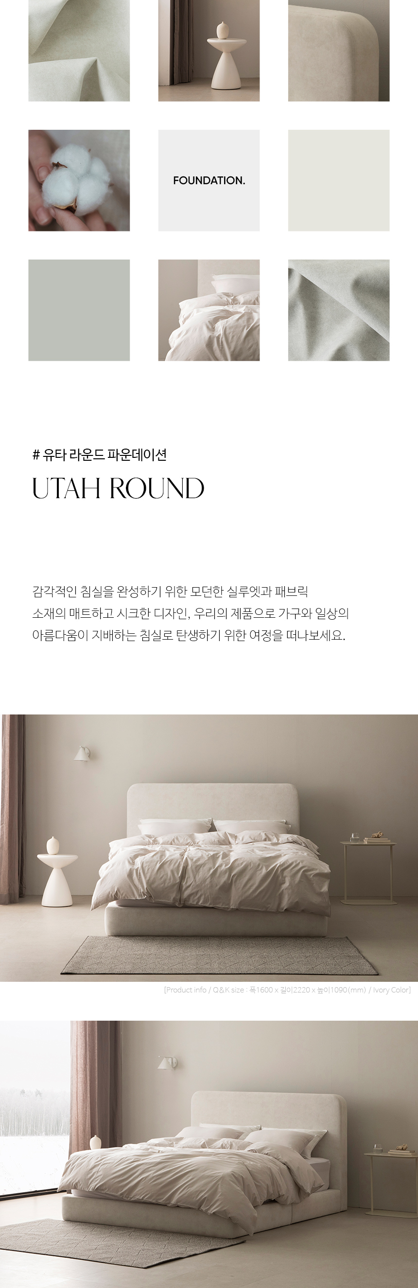 유타 라운드 패브릭 침대 파운데이션(맞춤 제작 가능)